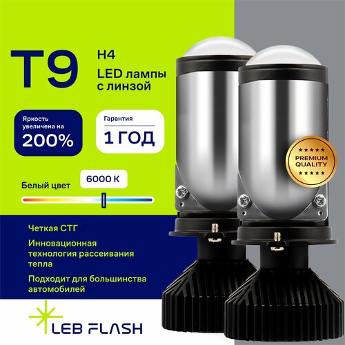Автомобильные светодиодные лампы Т9 H4 LED - это компактные, эффективные и долговечные лампочки для фар. Они оснащены мощными диодами, которые обеспечивают равномерное освещение дороги и имеют яркий, белый свет. Такие лампы идеально подходят для замены стандартных галогенных лампочек H4 в автомобилях. Эти мини линзы совмещают в себе обе функции головной оптики автомобиля - ближний и дальний свет. Лед лампы имеют высокую светоотдачу и широкий угол освещения, что помогает обеспечить отличную видимость дороги и повысить безопасность во время вождения. Благодаря светодиодной технологии, они потребляют меньше энергии, но при этом выдают существенно более яркий свет. Универсальные лэд лампы - подходят для разных марок автомобилей, с цоколем Н4. При наличии внутри фары колпачка для отсечки пучка света, лампа будет упираться в колпачок и не встанет на место (на некоторых моделях авто колпачки снимаются, и лампа легко встает на место). Подходят для фар с выгоревшем отражателем, за счет правильного распределения света. Ближний свет формируется полусферическим отражателем, отсечкой и линзой минуя отражатель. Особенно актуальна такая конструкция для старых фар с выгоревшим отражателем - ведь в этом случае улучшиться свет на авто с помощью LED ламп.
