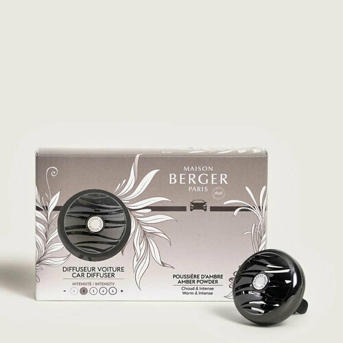 Комплект состоит из металлического диффузора и сменного керамического блока с ароматом “Амбровая Вуаль”. Корпус автодиффузора выполнен из серебристого металла. Он крепится к вентиляционной решетке Вашего автомобиля с помощью зажима.