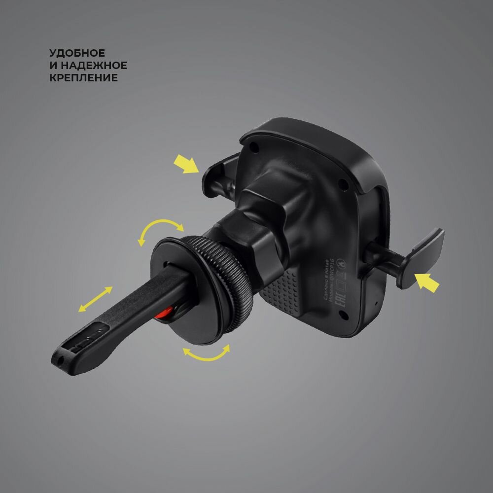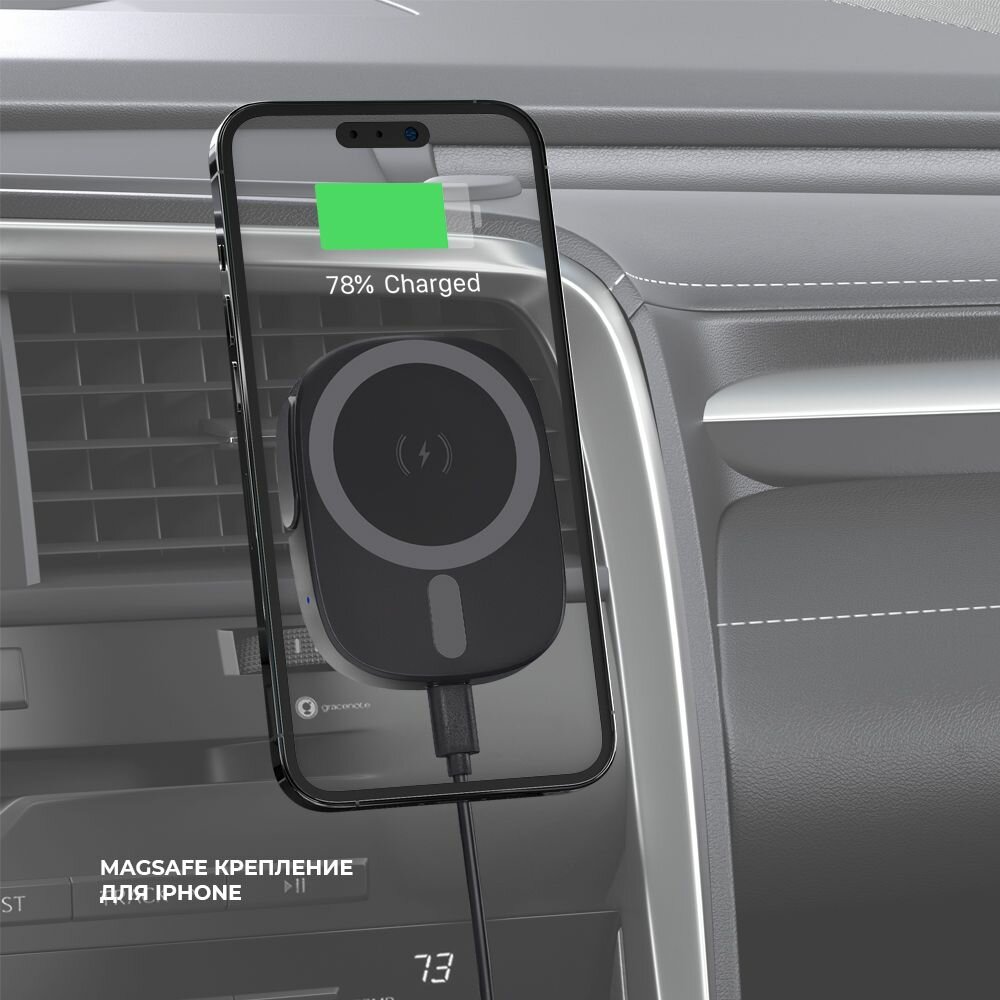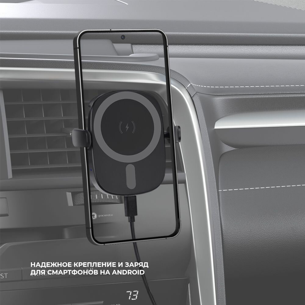 Автомобильный держатель Universal QI с беспроводной зарядкой от Deppa. Благодаря функции MagSafe вы можете пользоваться смартфоном за рулем и не волноваться за его остаток заряда. Быстрая зарядка мощностью 15 Вт без проблем пополнит запас аккумулятора в нужный момент, а надежный магнит крепко удержит смартфон даже на дорогах за чертой города. Не проблема, если ваше устройство не поддерживает MagSafe, держатель имеет функцию механической фиксации. Достаточно лишь нажать на сенсорную кнопку сбоку, приложить смартфон и фиксаторы автоматически его закрепят. Совместим со всеми смартфонами шириной до 82 мм. Держатель легко установить как на горизонтальные, так и на вертикальные решетки или лобовое стекло - оба крепежа идут в комплекте. Прикрепленный смартфон можно поворачивать на 360 градусов. В корпус устройства встроены несколько видов защиты: от перегрузок, короткого замыкания, перегрева, перезаряда. Рекомендуемая мощность АЗУ 18 Вт и более (в комплекте не идет). Совместимость: Все смартфоны шириной до 82 мм. Для использования беспроводной зарядки необходима поддержка стандарта Qi. Технические характеристики: Входной ток: 5В/2А, 98/2А; Выходная мощность: до 15Вт в зависимости от модели телефона; Защита от перегрузок, короткого замыкания, перегрева, перезаряда, обнаружение посторонних предметов; Габариты устройства (без крепежа): 64х84х52мм; Вес устройства (без крепежа): 110г. Led-индикатор: Красный цвет - режим ожидания. Синий цвет – режим зарядки. Синий цвет мигает - обнаружен посторонний предмет