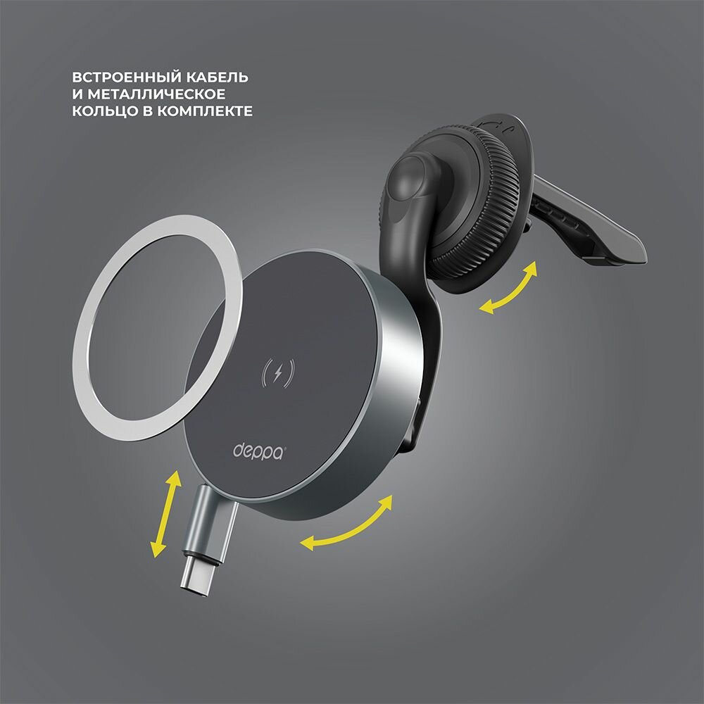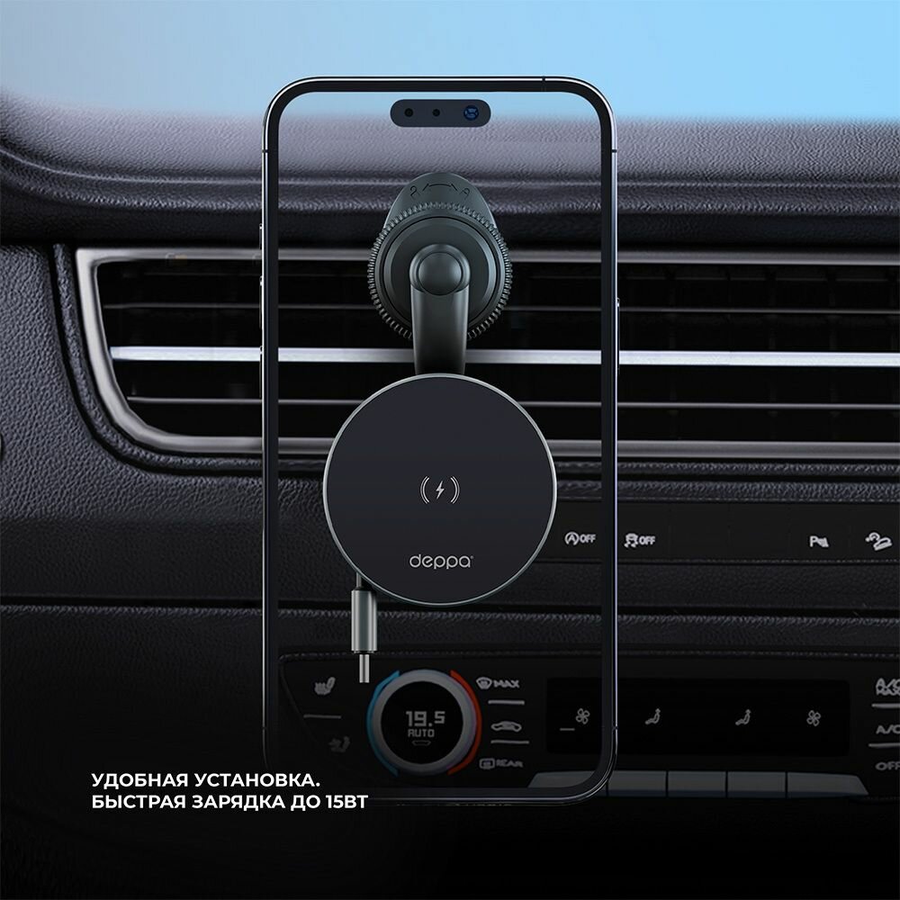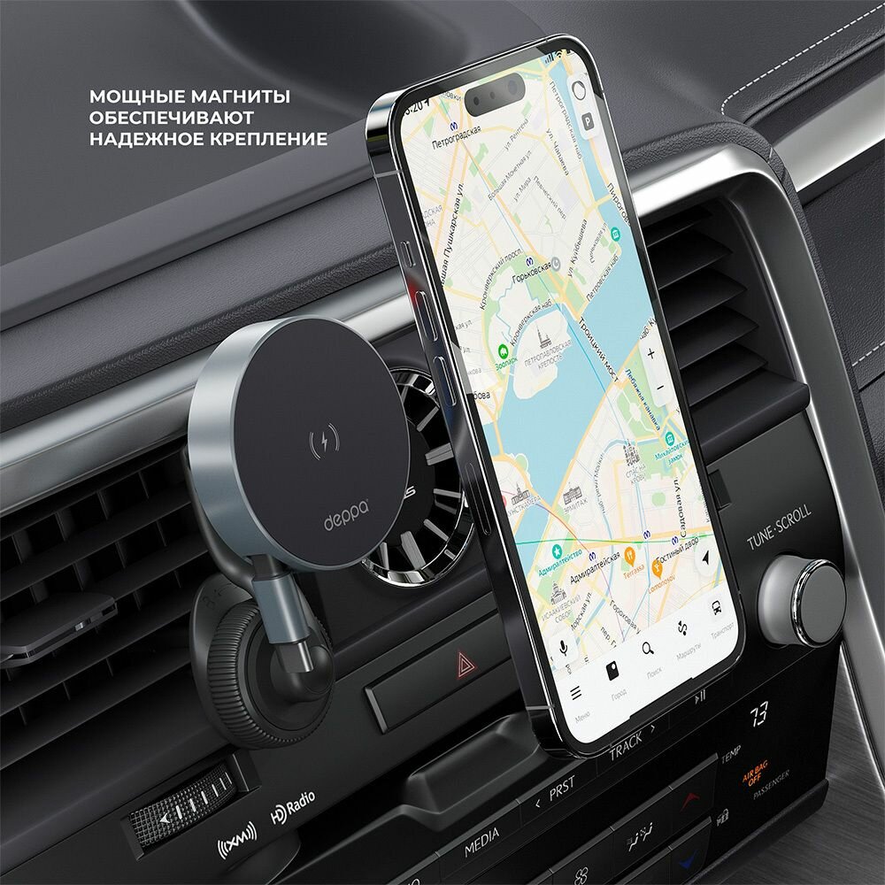 Купить Автомобильный держатель Magic Cable 2 Qi, Серый, крепление в вентиляционную решетку, беспроводная зарядка, Deppa 55211 с доставкой по всей России.