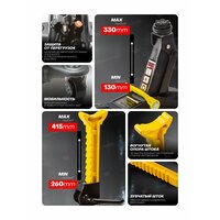 Высота подхвата 130 мм, максимальная уровень подъема 330 мм. Мобильный и надежный домкрат оснащен 2 фиксированными и 2 поворотными колесами, поэтому его удобно перемещать.