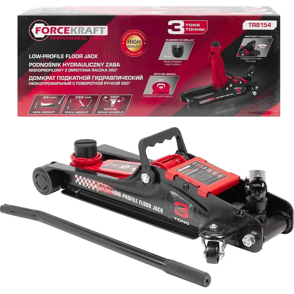 Купить Домкрат подкатной гидравлический низкопрофильный Forcekraft 3т, поворотная ручка 360, h min 85мм, h max 385мм FK-TR8154(60244) с доставкой по всей России.