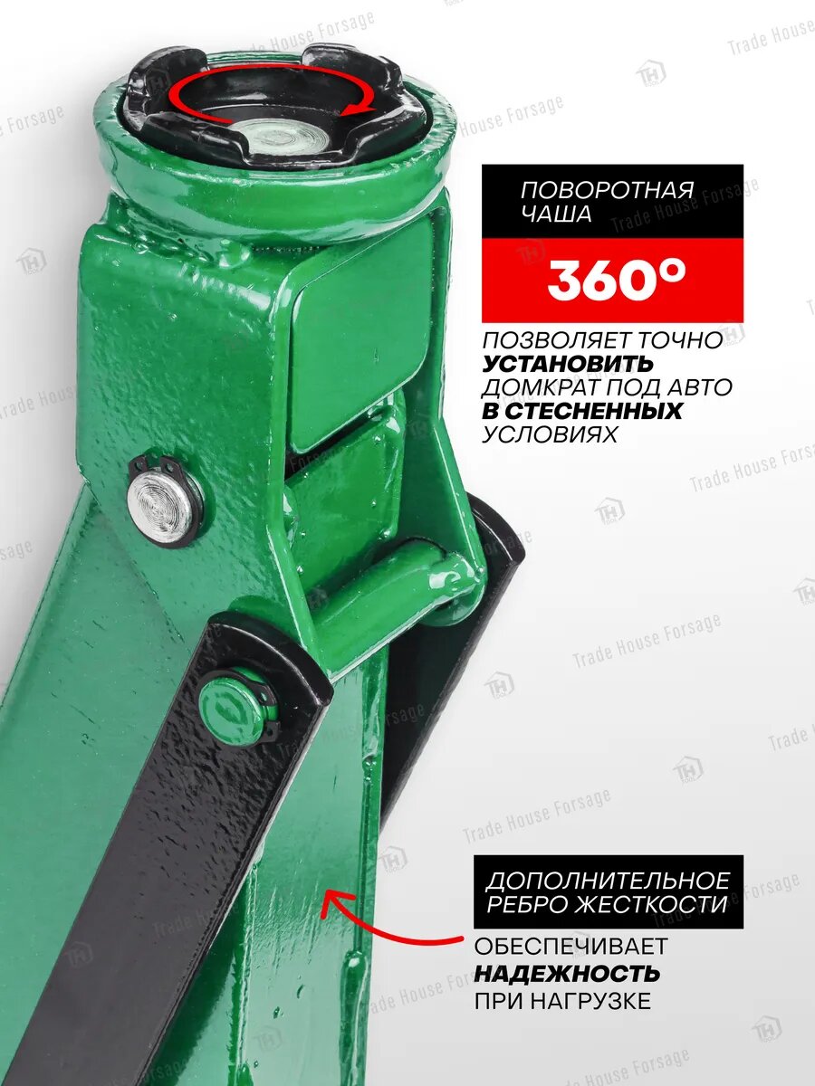 Домкрат оснащен специальным предохранительным и спускным клапаном для защиты от перегрузки, позволяет плавно без усилий опустить домкрат.