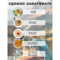 Чайник оснащен функциями кипячения, поддержания температуры и подогрева, что позволяет наслаждаться горячим напитком в любое время. Автоматическое отключение при закипании обеспечивает безопасность использования.