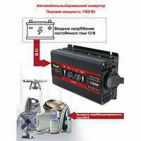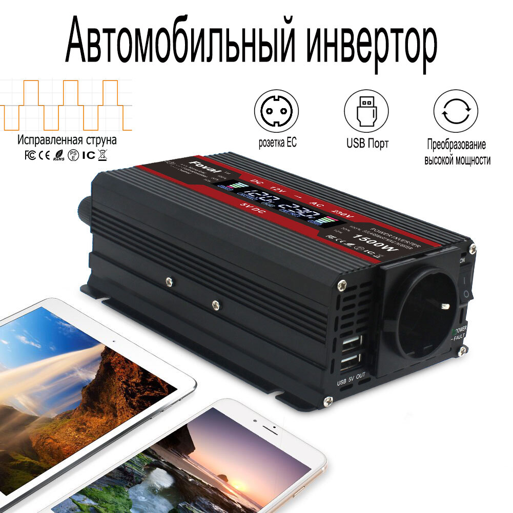 Автомобильный инвертор 1500W, преобразовательное напряжение 12V — 220V, с интерфейсом 2USB, розетка ЕС, ЖК-индикатор: сравнение цен, характеристики, фото, актуальное наличие и цены.