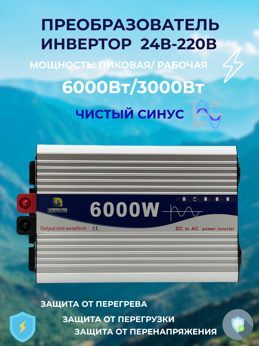 Купить Автомобильный инвертор 24V-220V/Q/6000W/3000W с доставкой по всей России. Автомобильный инвертор 24V-220V/Q/6000W/3000W: сравнение цен, характеристики, фото, актуальное наличие и цены.