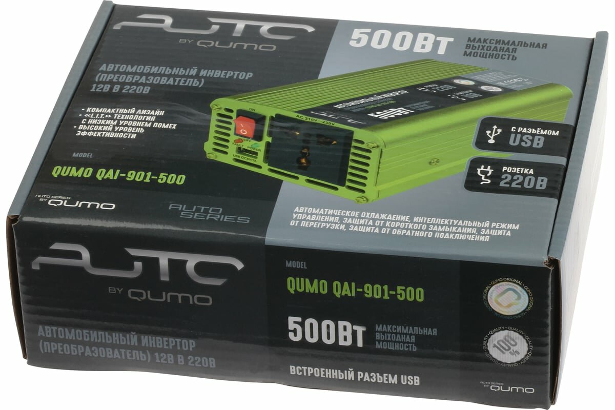Купить Автомобильный инвертор QUMO преобразователь постоянного тока 12В в переменный ток 220В, модель QAI-901-500 Inv 001 , максимальная выходная мощность 500Вт, встроенный разъем USB 33795 с доставкой по всей России. Автомобильный инвертор QUMO преобразователь постоянного тока 12В в переменный ток 220В, модель QAI-901-500 Inv 001 , максимальная выходная мощность 500Вт, встроенный разъем USB 33795: сравнение цен, характеристики, фото, актуальное наличие и цены.