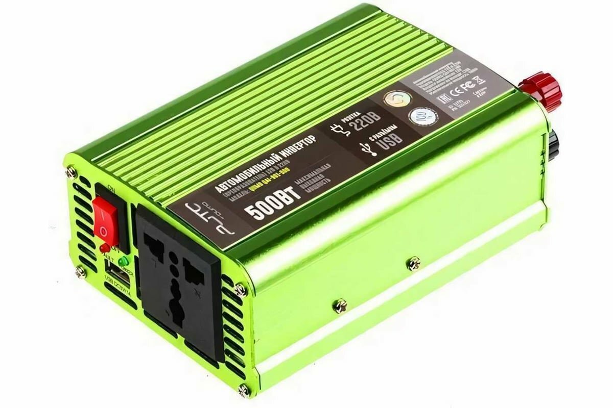Автомобильный инвертор QUMO преобразователь постоянного тока 12В в переменный ток 220В, модель QAI-901-500 Inv 001 , максимальная выходная мощность 500Вт, встроенный разъем USB 33795