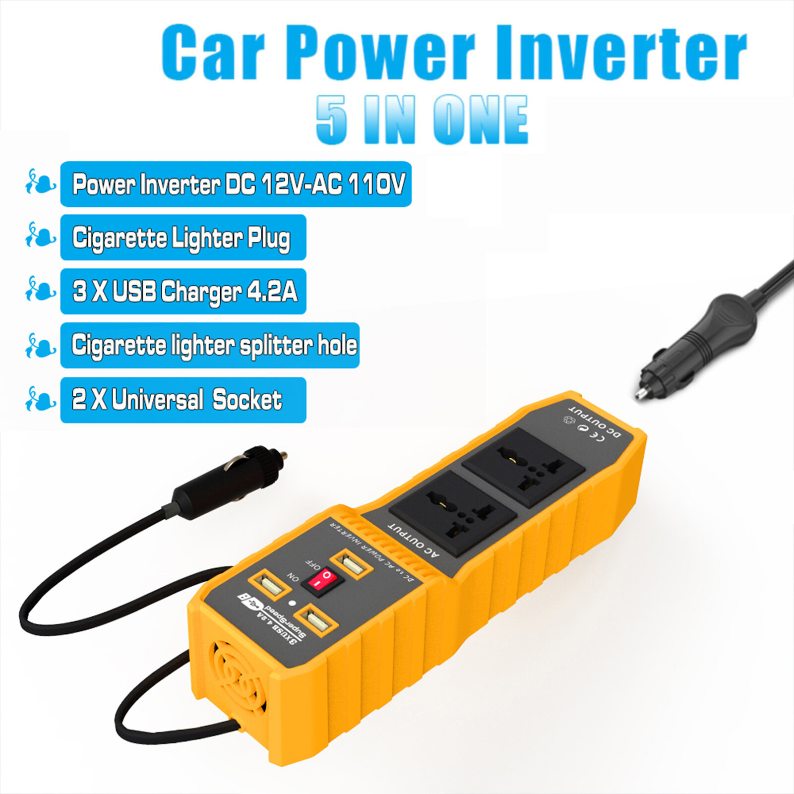 Автомобильный инвертор, высокочастотный модифицированный синусоидальный инвертор в преобразователь переменного тока 110 В с 3 портами USB и 2 розетками переменного тока, прикуриватель: сравнение цен, характеристики, фото, актуальное наличие и цены.