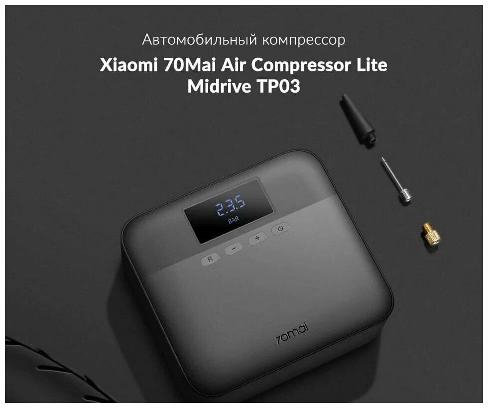 Безопасность в пути. Xiaomi 70mai Air Compressor Lite (Midrive TP03) – автомобильный компрессор с высокой скоростью нагнетания воздуха. На подкачку средней шины у него уходит меньше 5 минут. На экране можно отследить текущее давление. Достаточно подключить прибор к ниппелю и использовать его в качестве манометра.