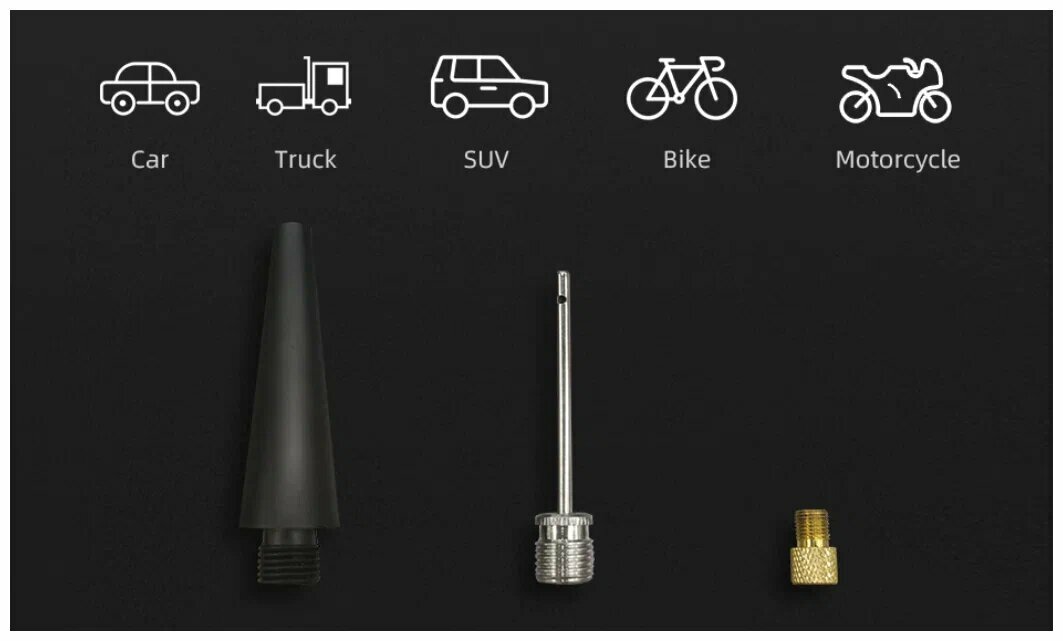 Портативный компрессор Xiaomi 70mai Air Compressor Lite (Midrive TP03) подключается к прикуривателю. В комплекте идет специальный адаптер. Помимо – есть воздушный шланг и несколько переходников. С их помощью можно подкачать матрац или мяч. Корпус устройства и шестерни сделаны из металла. В компрессор встроена система защиты от перегрева. Прибор может непрерывно работать 30 минут.