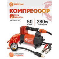 Компрессор подключается к аккумулятору автомобиля через клеммы, обеспечивая напряжение 12V. Корпус компрессора изготовлен из металла, устойчивого к коррозии, и эффективно охлаждается во время работы. Поршень двигателя оснащен уплотнительным кольцом из гибкого тефлона, что обеспечивает его продолжительную безотказную работу.