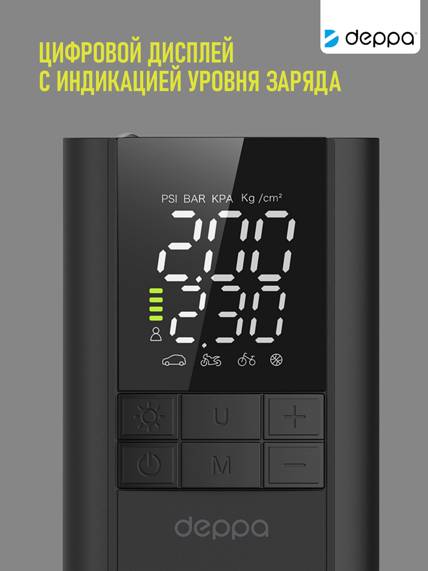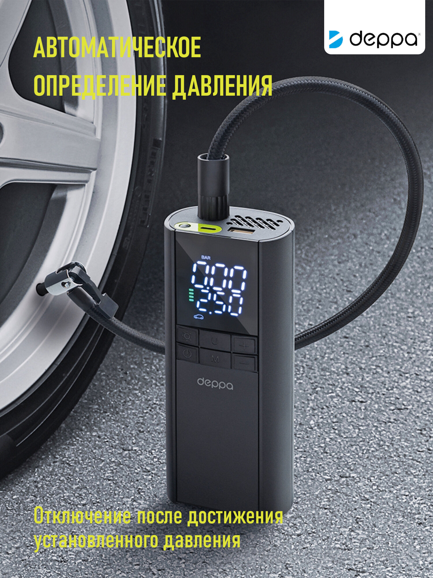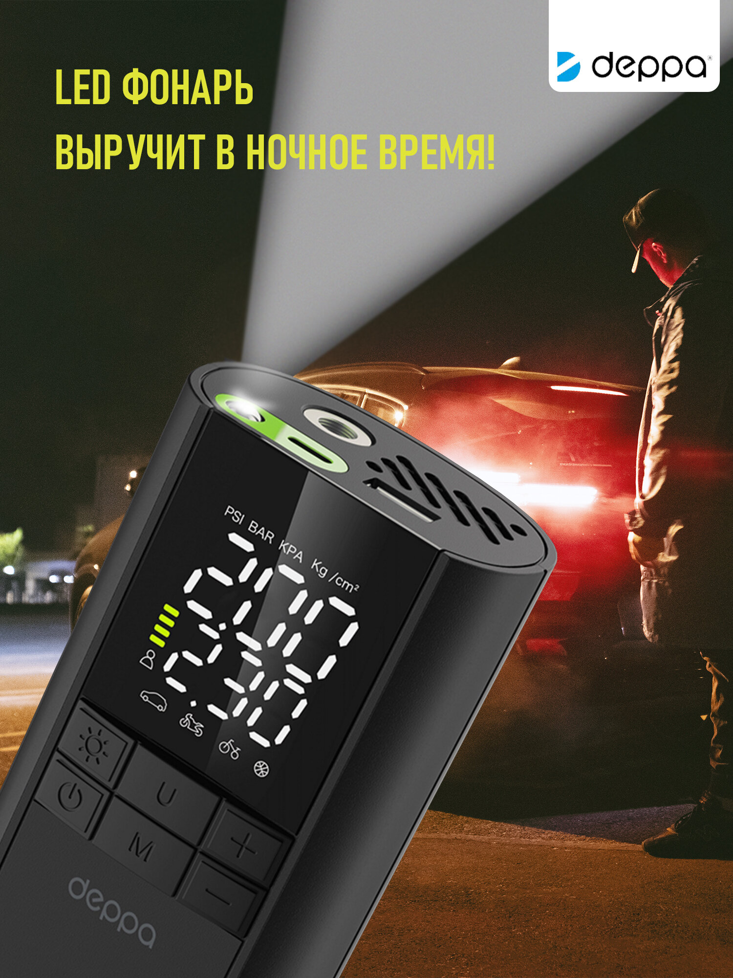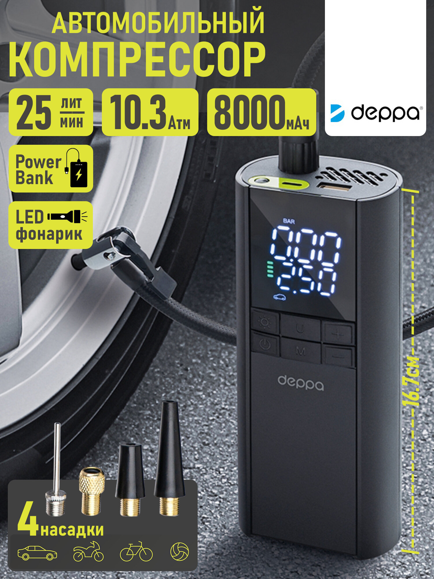 Автомобильный компрессор Deppa 8000мАч, LED-фонарь, 4 насадки: сравнение цен, характеристики, фото, актуальное наличие и цены.