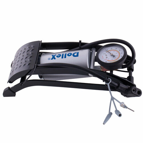 Насос ножной Dollex NN-011 предназначен для накачивания сжатым воздухом колёс автомобилей, мото и вело техники, а также мячей, игрушек и прочих надувных изделий. Быстрозажимной коннектор позволяет подключиться не только к автомобильному ниппелю типа Shrader, но и к велосипедному ниппелю типа Presta. Насос комплектуетсяточным манометром, длинным шлангом 60 см. В комплекте насадки для мячей, лодок и дополнительный переходник с вело-ниппеля на автонасос. Максимальное давление: 7 кг/см2 (100 PSI). Цилиндр: диаметр 62 х 80 мм. Рабочий объем: 243 см3.