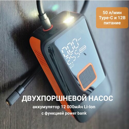 Автомобильный насос компрессор аккумуляторный двухпоршневой беспроводной 2в1 питание 12В /Type-C повербанк 12000 мАч 10 Бар: сравнение цен, характеристики, фото, актуальное наличие и цены.