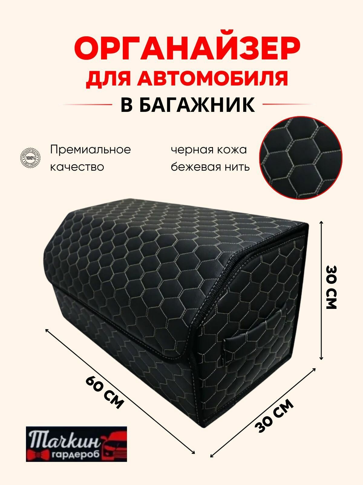 Автомобильный органайзер в багажник, 60*30*30 см, рисунок соты черные/ строчка бежевая.: сравнение цен, характеристики, фото, актуальное наличие и цены.
