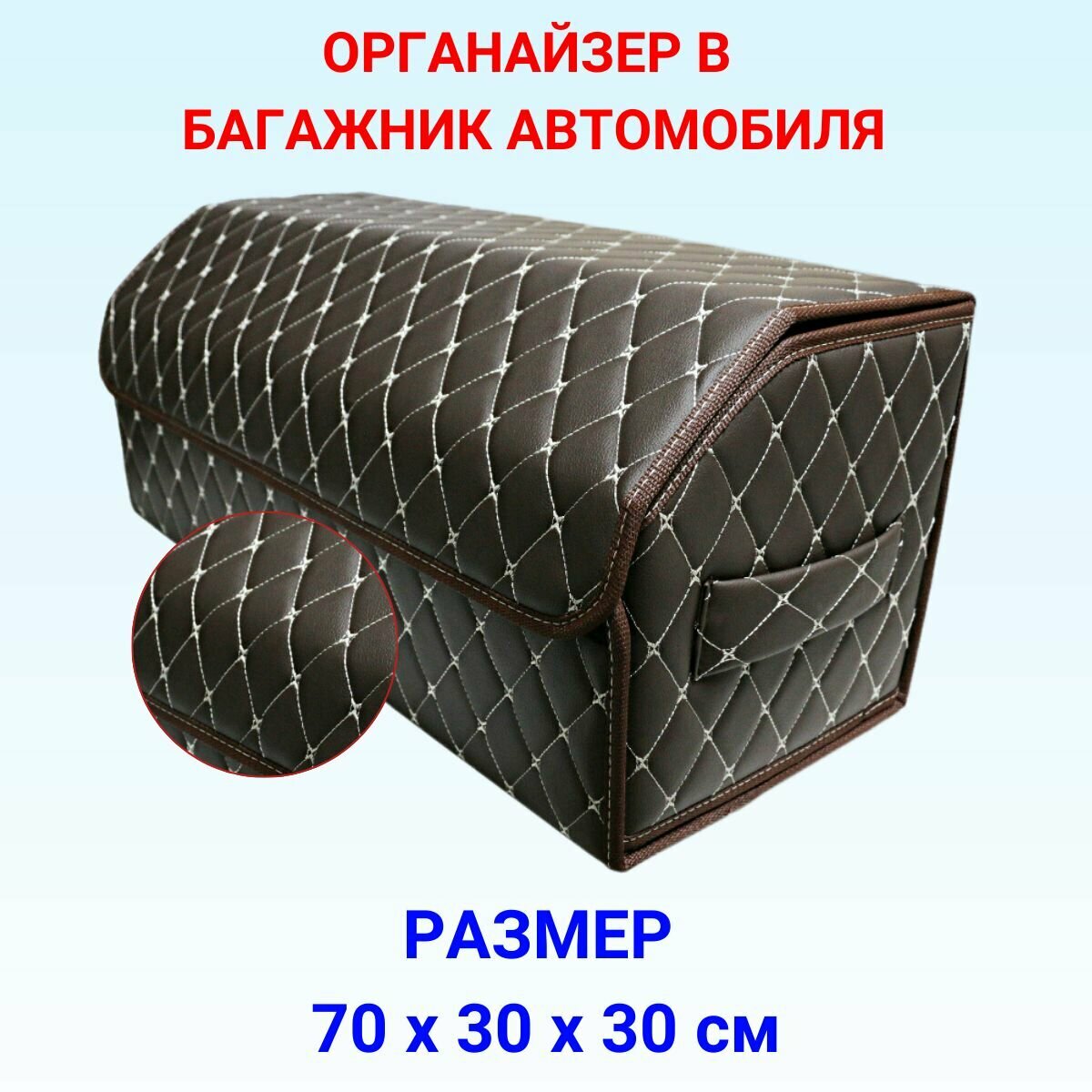 Автомобильный органайзер в багажник, 70*30*30 см, рисунок фигурный ромб коричневый/ строчка бежевая/ окантовка коричневая.: сравнение цен, характеристики, фото, актуальное наличие и цены.