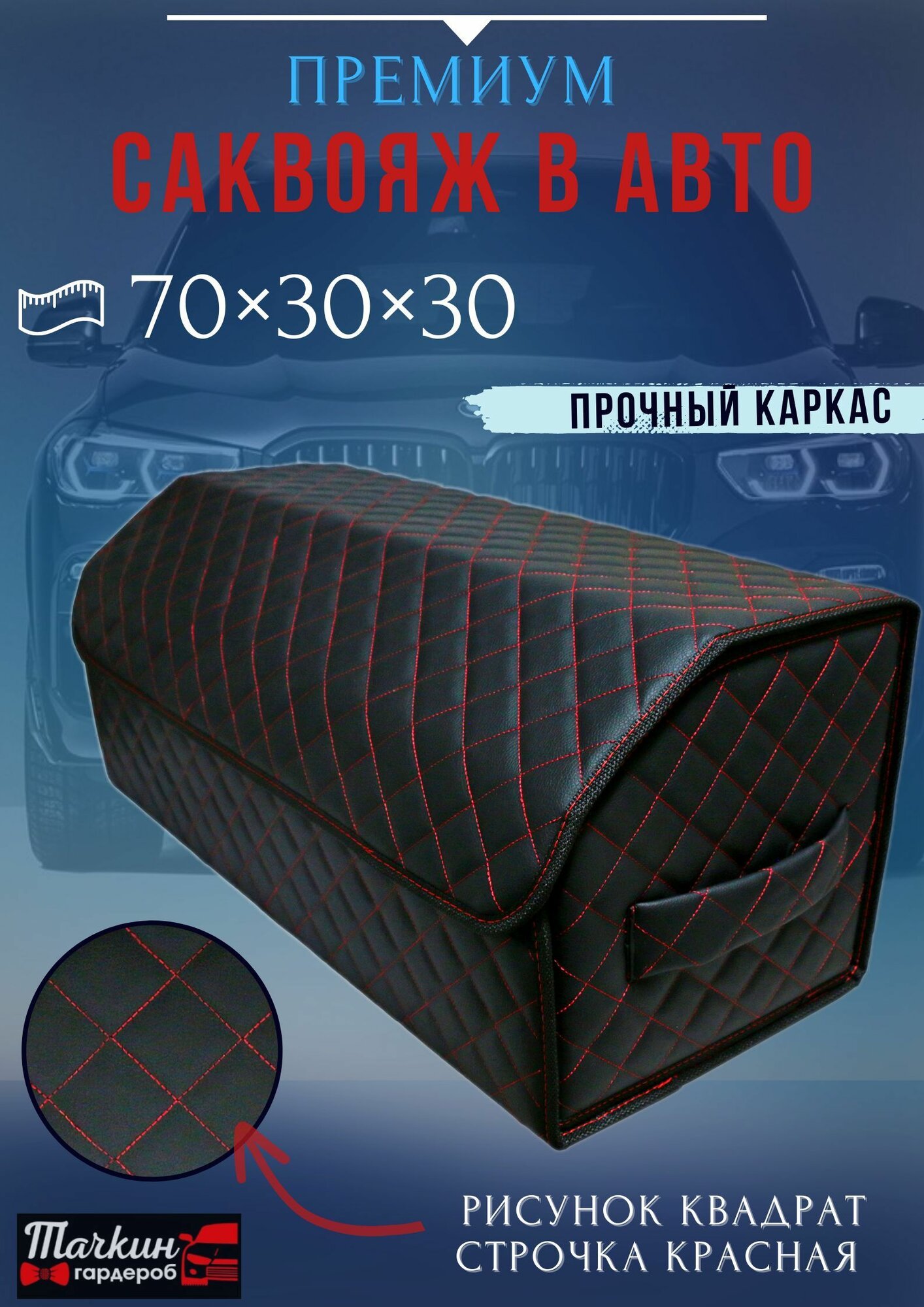 Автомобильный органайзер в багажник машины, 70*30*30 см, рисунок квадрат черный/ строчка красная.: сравнение цен, характеристики, фото, актуальное наличие и цены.