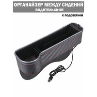 Водительский органайзер между сидений в машину – идеальное решение для комфортного хранения всевозможных мелочей в автомобиле. Органайзер оснащён RGB подсветкой с 7 режимами, так же ее можно отключить, есть 2 USB порта для зарядки, которое позволяет подключать ваш телефон или другое устройство прямо в машине. Этот карман-органайзер на сидение автомобиля создан для организации пространства и предназначен для хранения телефона, карт, пропусков, бутылок, стаканов и других вещей. К тому же, в органайзер встроен подстаканник, который обеспечивает Вам комфортный доступ к любимым напиткам на протяжении всей поездки. Карман-органайзер легко устанавливается на сидение машины всего за пару секунд. Главное, убедитесь, что зазор между консолью и сиденьем не больше 1,5 см!
