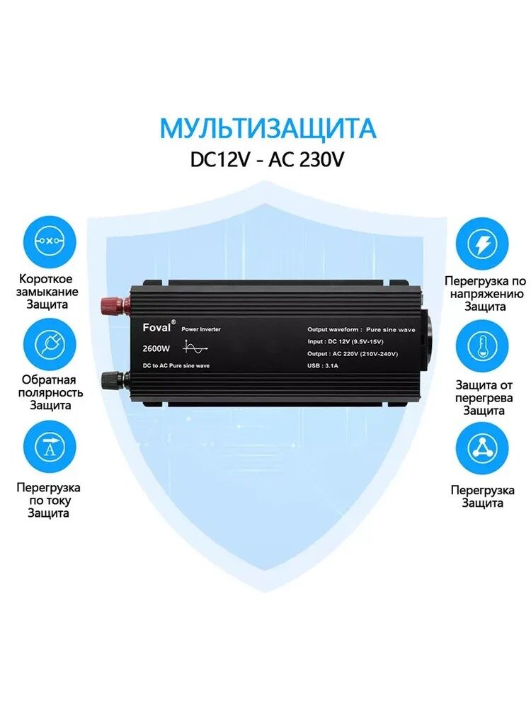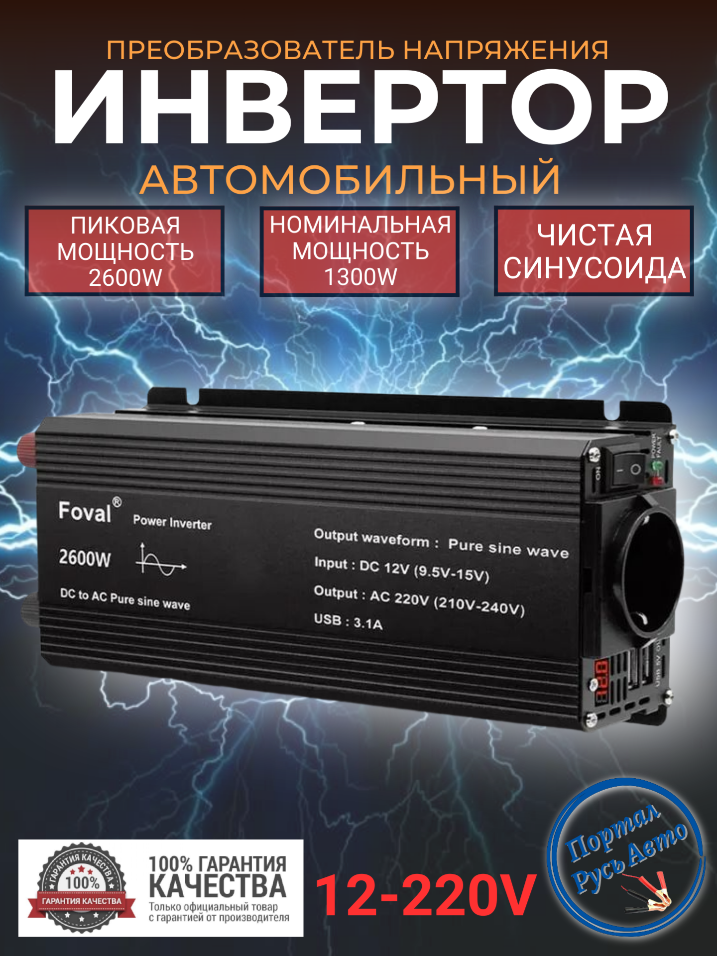 Автомобильный преобразователь напряжения инвертор 2500w-2600Вт 12В-220В Foval Чистый синус: сравнение цен, характеристики, фото, актуальное наличие и цены.