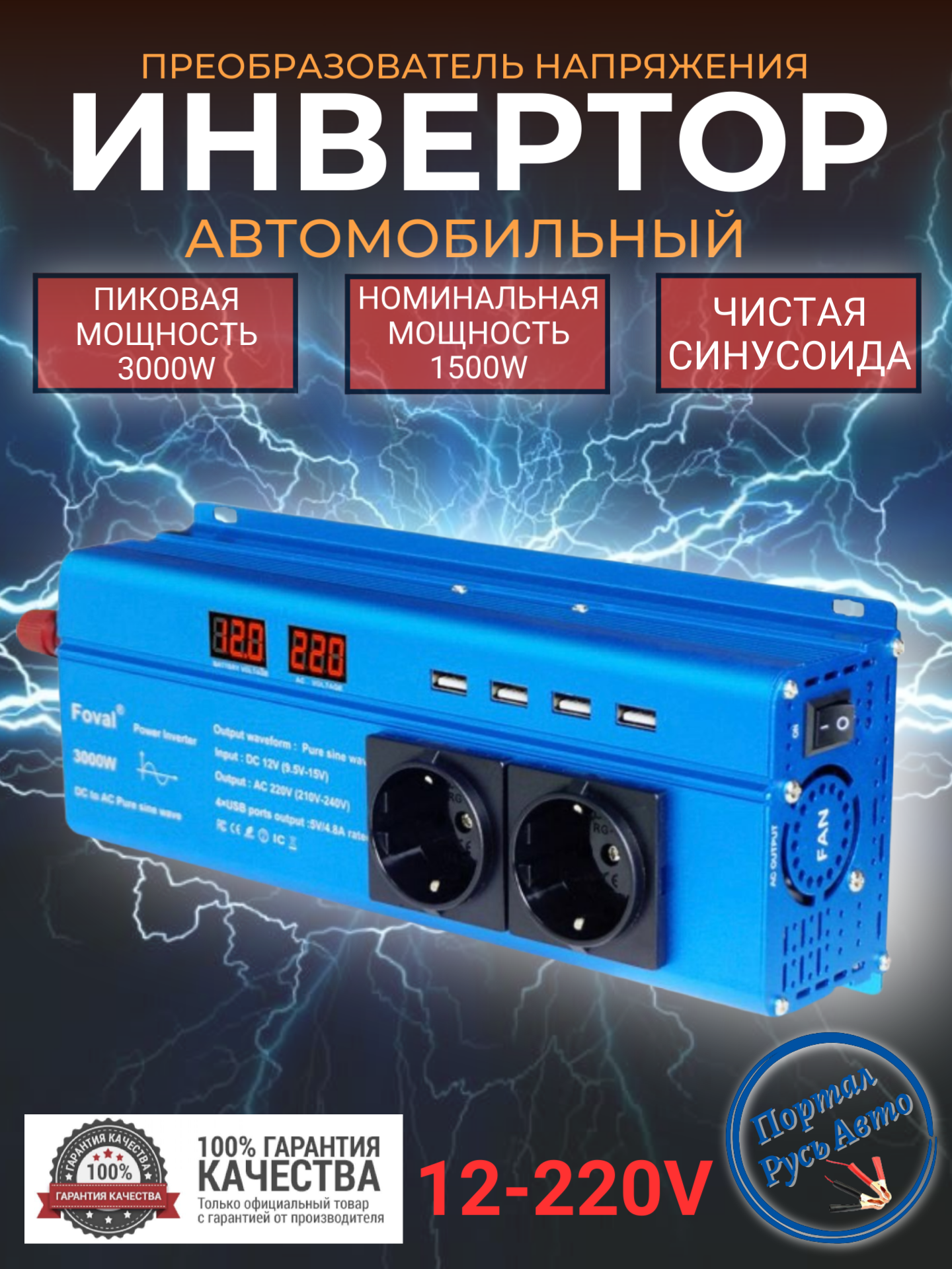 Автомобильный преобразователь напряжения инвертор 3000 Вт 12В-220В FOVAL 3000w 12v-220v Power inverter Чистая, немодифицированная синусоида.: сравнение цен, характеристики, фото, актуальное наличие и цены.