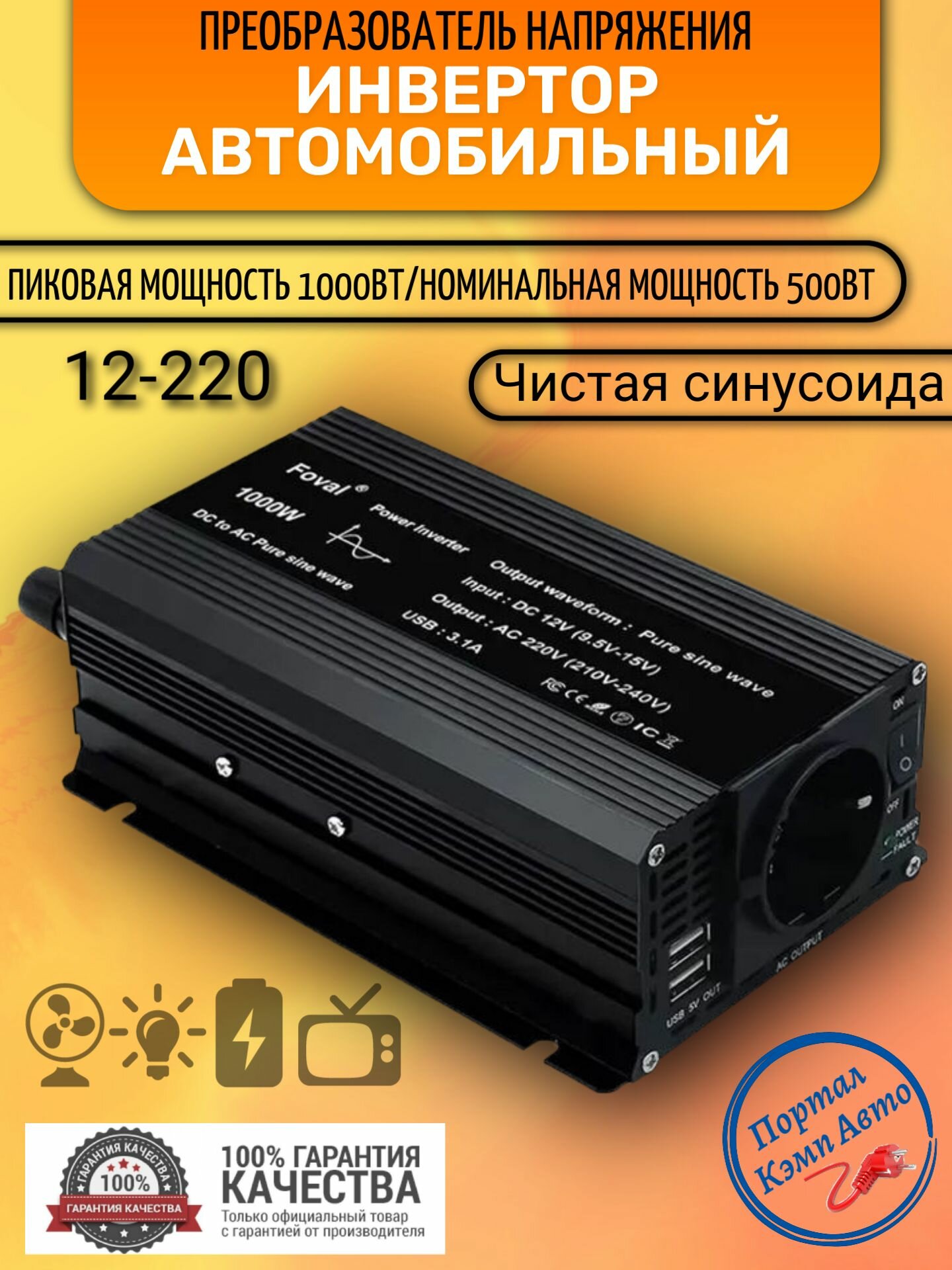 Автомобильный преобразователь напряжения инвертор FOVAL 1000 w 12v-220v Power inverter. Чистая, немодифицированная синусоида.: сравнение цен, характеристики, фото, актуальное наличие и цены.