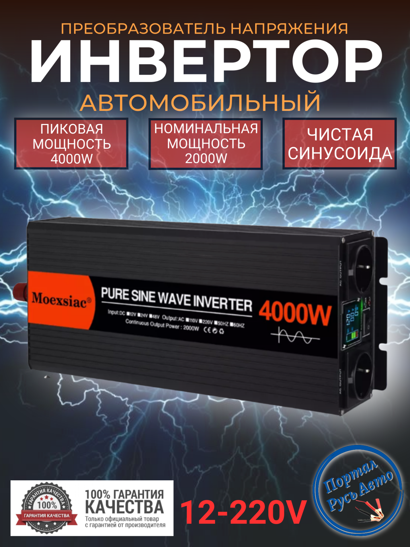 Автомобильный инвертор 4000w 12v-220v Чистый синус: сравнение цен, характеристики, фото, актуальное наличие и цены.