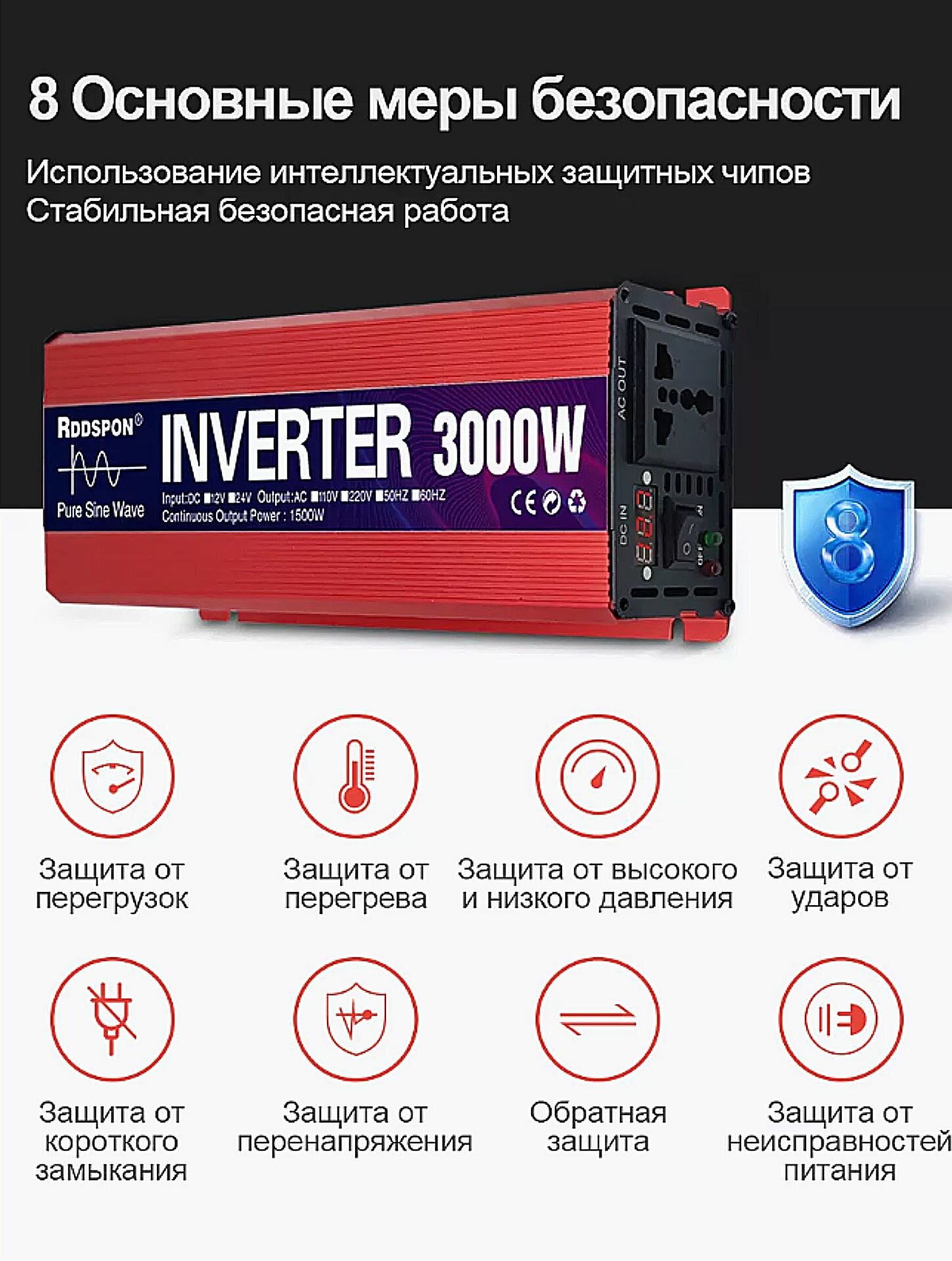 Автомобильный преобразователь напряжения инвертор RDDSPON 3000Вт Внимание 24!!!в-220в Чистый синус: сравнение цен, характеристики, фото, актуальное наличие и цены.