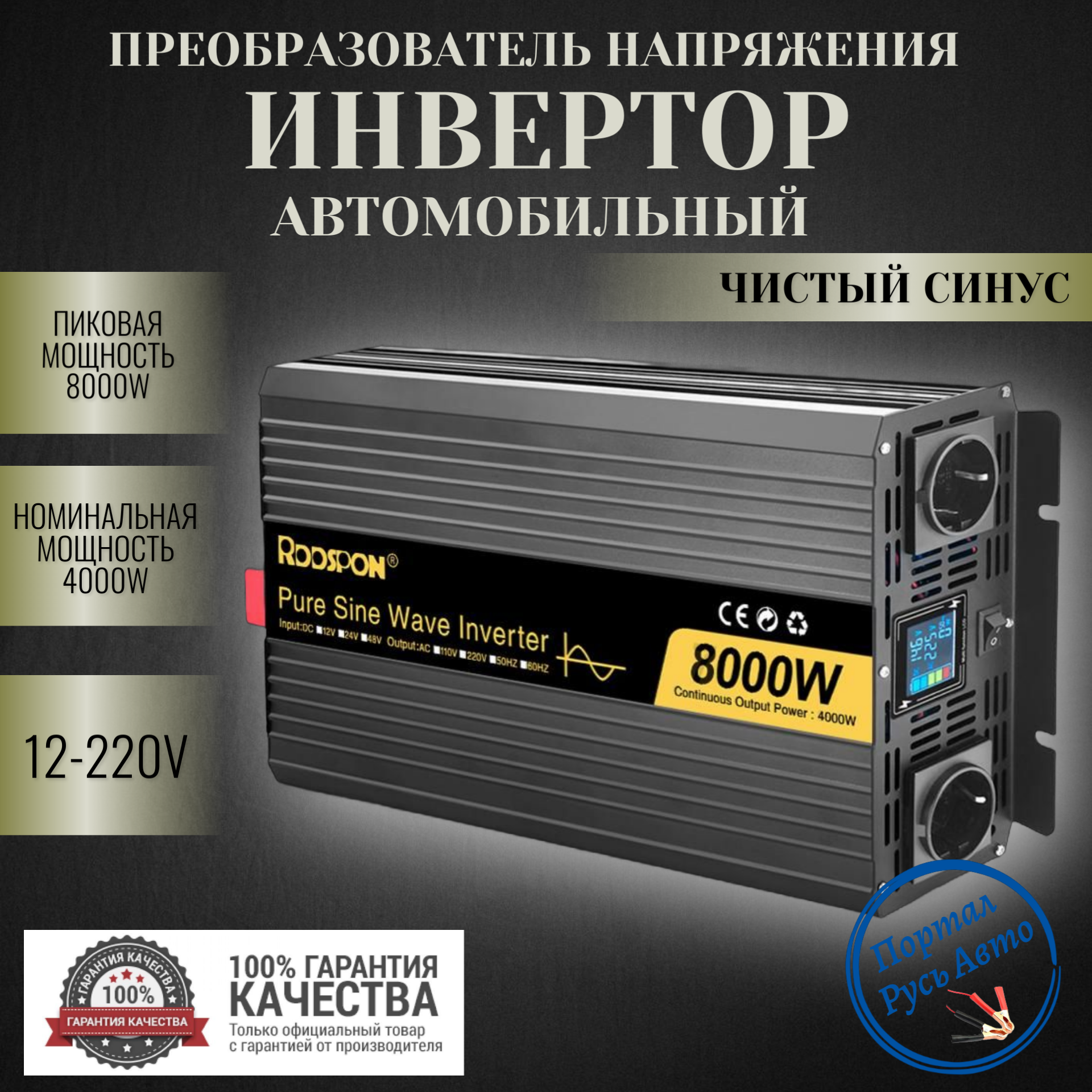 Автомобильный преобразователь напряжения инвертор RDDSPON 8000Вт 12В-220В Чистый синус: сравнение цен, характеристики, фото, актуальное наличие и цены.