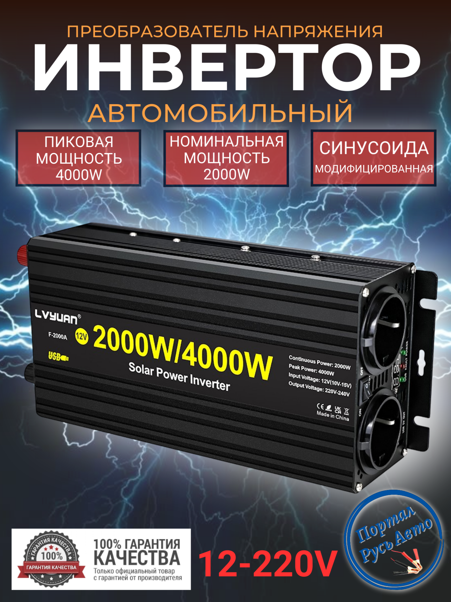 Автомобильный преобразователь напряжения Lvyuan 4000 Вт 12В-220В Power inverter Модифицированная синусоида.: сравнение цен, характеристики, фото, актуальное наличие и цены.
