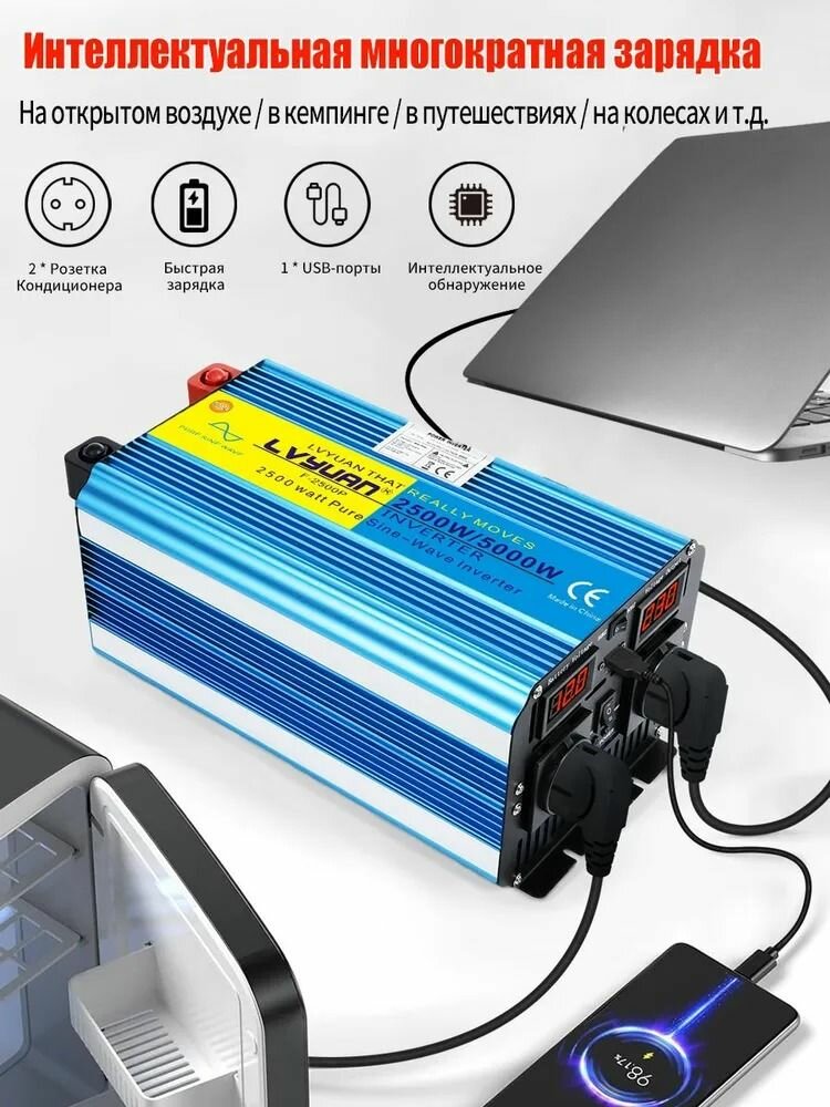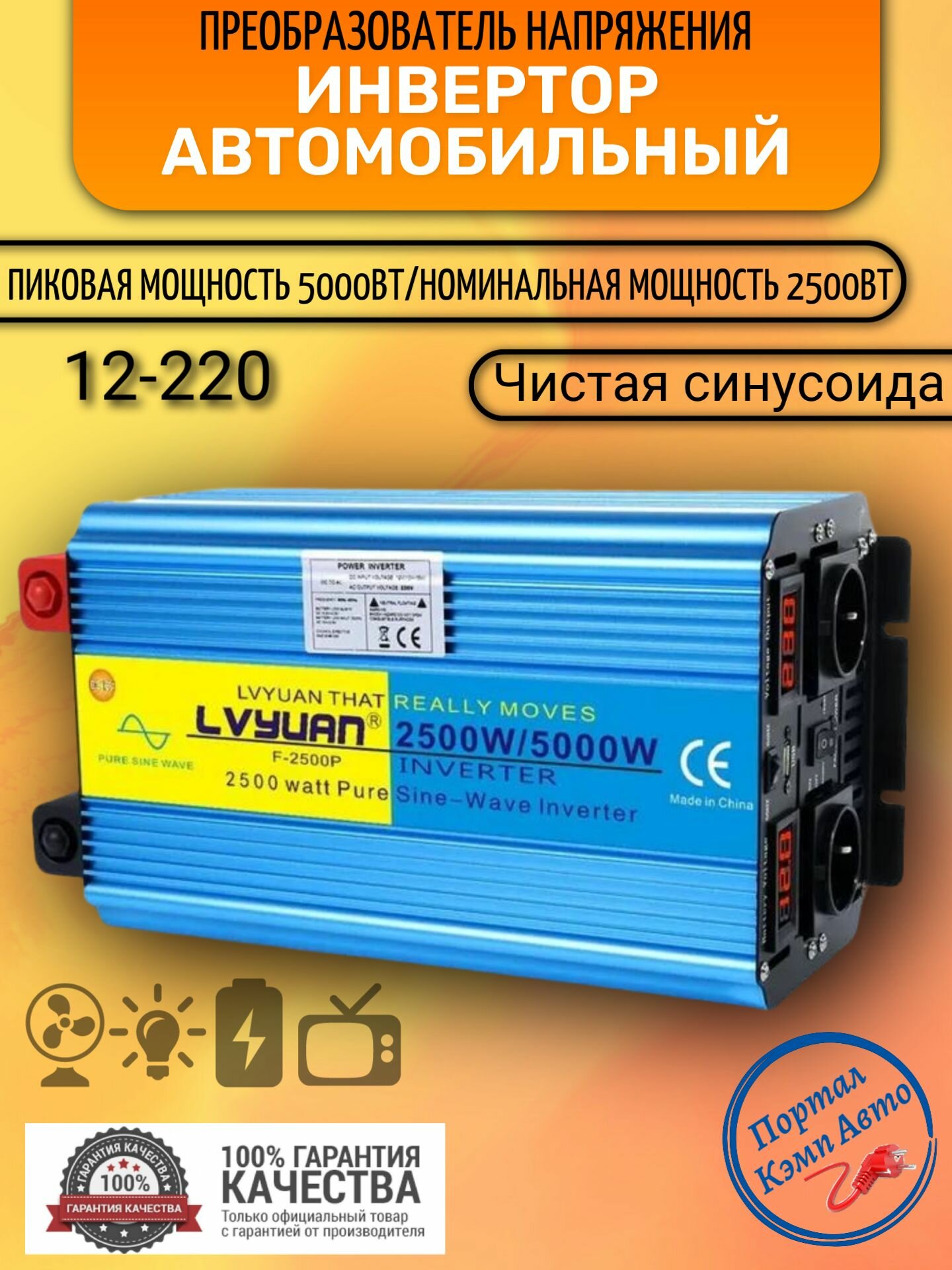 - Постоянная выходная мощность: 2500 Вт (обеспечивает непрерывную мощность выше номинальной мощности используемого оборудования)