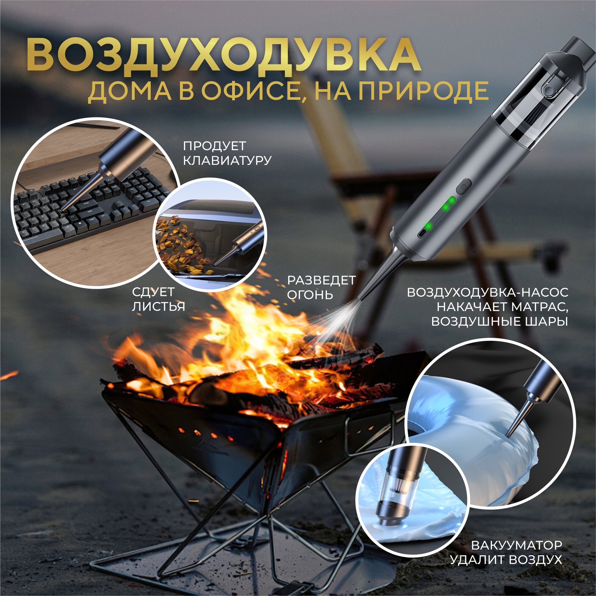 Наш пылесос это портативный мини гаджет без проводов и с размерами в кейсе 20×30 см, поэтому Вы можете взять его с собой куда угодно. Автопылесос можно использовать не только для чистки авто, он отлично подойдет для мягкой мебели, кресла или дивана. Поможет быстро пропылесосить различные поверхности в доме, а надев длинную насадку ветродуй, Вы получите воздуходувка для мангала, насос для шариков, насос для надувного матраса ! Так же он идеален в использовании как воздуходувка для ноутбука и компьютера. Беспроводной пылесос для автомобиля компактного размера не занимает много места при хранении и перевозке.