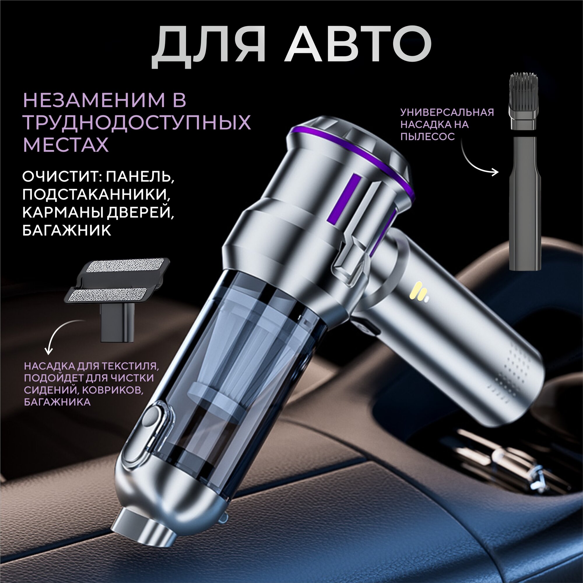 | Дополнительные функции | возможность использования в автомобиле, удаление пылевого клеща |