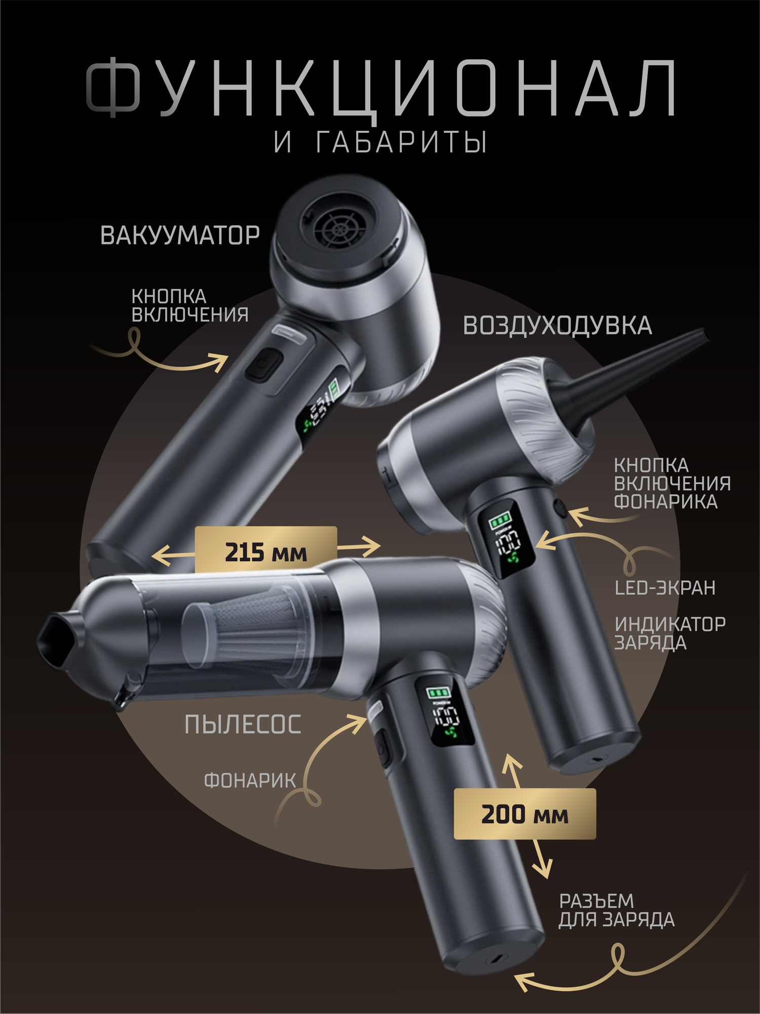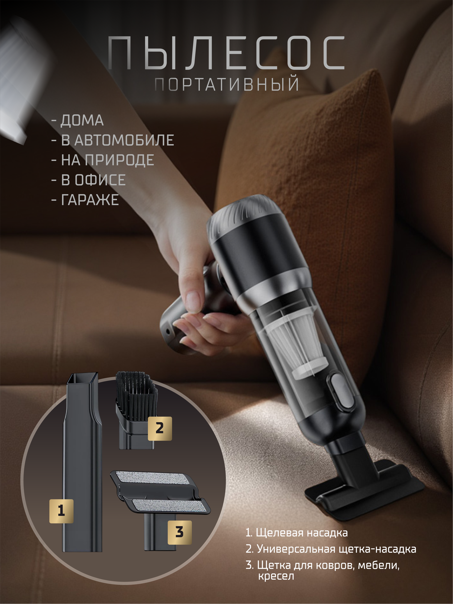 Беспроводной мини пылесос для автомобиля и дома - незаменимый аксессуар для каждого автомобилиста и хозяйки. Он наведет порядок в машине. Модель Nimble Suitu SТ-6698A Plus Максимальная мощность нашей новинки 16 000 Pa/120 W. Наш товар получил бесщеточный мотор, что сказывается в лучшую сторону. Автопылесос поставляется в наборе с 5 универсальными насадками, благодаря которым Вы сможете очистить все труднодоступные места в салоне, в том числе сиденья и приборную панель. Также вы получаете 5 hepa фильтров которые прослужат весь срок службы, просто чистите и мойте их по мере засоренности. Данный девайс заряжается при помощи usb провода (входит в комплект), время работы на одной зарядке 12-30 минут, все зависит от мощности которой вы будите пользоваться, а их в нашем пылесосе 3! Мы встроили третий аккумулятор и теперь в нашем гаджете 3 батареи по 2000а! Для подзарядки применяйте блок питания от телефона на 1-2А или через usb порт. Бренд Nimble работает на 10-15 минут дольше чем именитые модели Xiaomi и Karcher(25-30 минут против 10-15). Его можно использовать не только для чистки машины, он подойдет для мягкой мебели, кресла или дивана. Поможет быстро пропылесосить различные поверхности в комнате, а надев длинную насадку ветродуй, Вы получите воздуходувку для мангала, воздушных шариков, игрушек и даже надувной лодки. Так же он идеален в использовании как воздуходувка для ноутбука и компьютера. Гаджет компактного размера не занимает много места при хранении и перевозке. Благодаря ручке эргономичной формы и небольшому весу, он очень удобен в рабочем процессе. С ним легко справятся пользователь любой комплекции. Благодаря контейнеру для пыли он прост в уходе, после уборки просто вытряхните собранный мусор и промойте фильтр под струей проточной воды. Машинный минипылесос порадует не только своей функциональностью, но и отличным качеством. Устройство разработано в соответствии с немецкими технологиями. Ищите приятный сюрприз для автолюбителей мужчины, женщины, девушки или парня? Это практичный авто аксессуар на подарок водителю, щепетильной хозяйки и на любой праздник, день рождения, юбилей, или без повода.