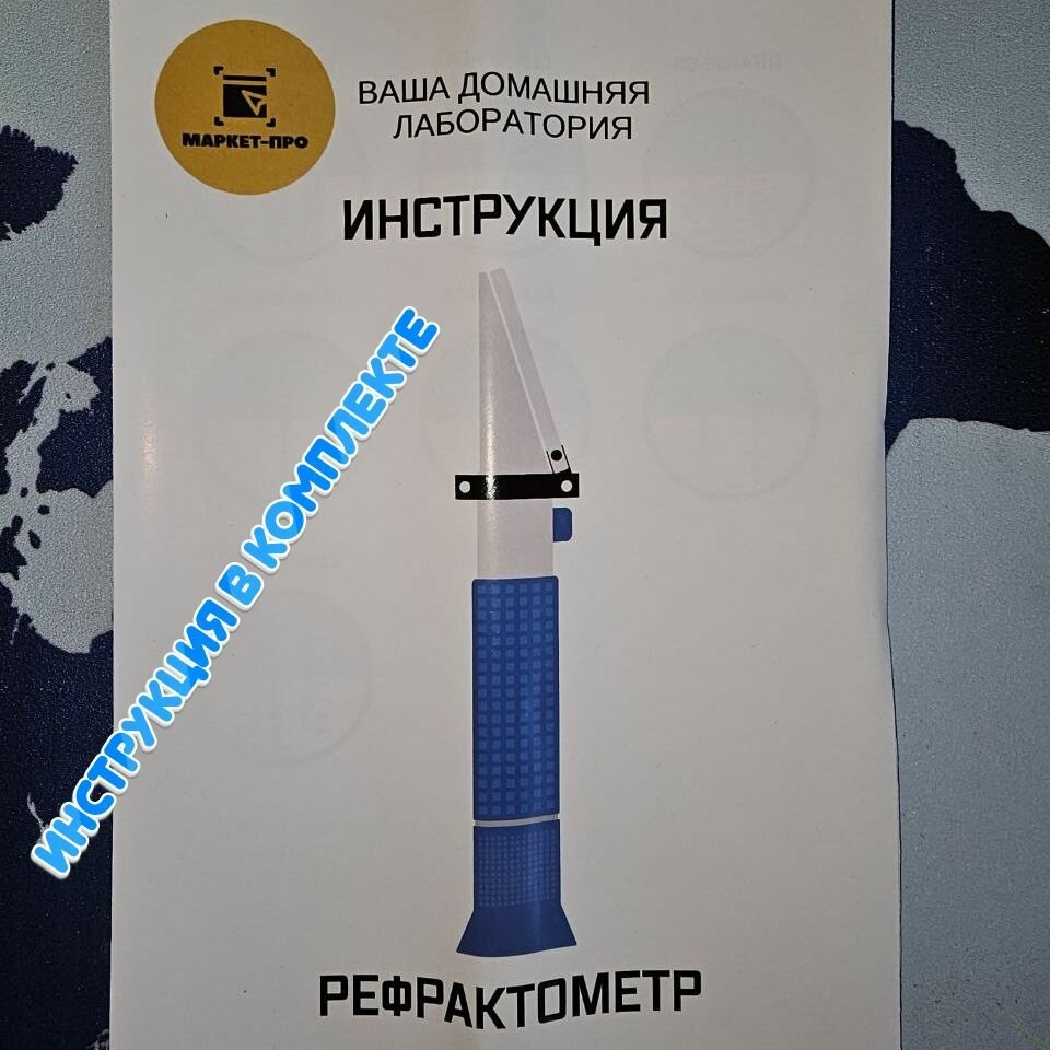 - Открыть крышку, удалить воду и протереть призму и крышку мягкой тряпочкой > капнуть измеряемой жидкости на призму > закрыть и прижать стекло > нужное значение находится на границе голубой и белой полосы.