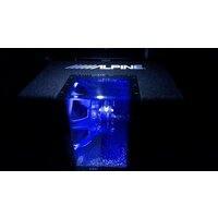 Корпусный сабвуфер Alpine SBG-1244BP имеет акриловую вставку, через которую можно заглянуть внутрь аппарата. Его внешний вид украшает приятная голубая подсветка, которая эффектно смотрится в темноте. Впрочем, в большинстве случаев автолюбители ее не видят, поскольку девайсы такой мощности обычно размещаются в багажнике, да еще и надежно монтируются, чтобы они не перемещались во время движения машины. Но если габариты автомобиля позволяют, то сабвуфер можно поместить и в салоне, но тогда нужно следить за тем, чтобы случайно не повернуть регулятор громкости на максимум.