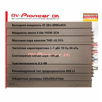 • Автомобильный усилитель для звука Pioneer. Oн обладает мощностью 1800W, что обеспечивает высококачественное звучание в вашем автомобиле.