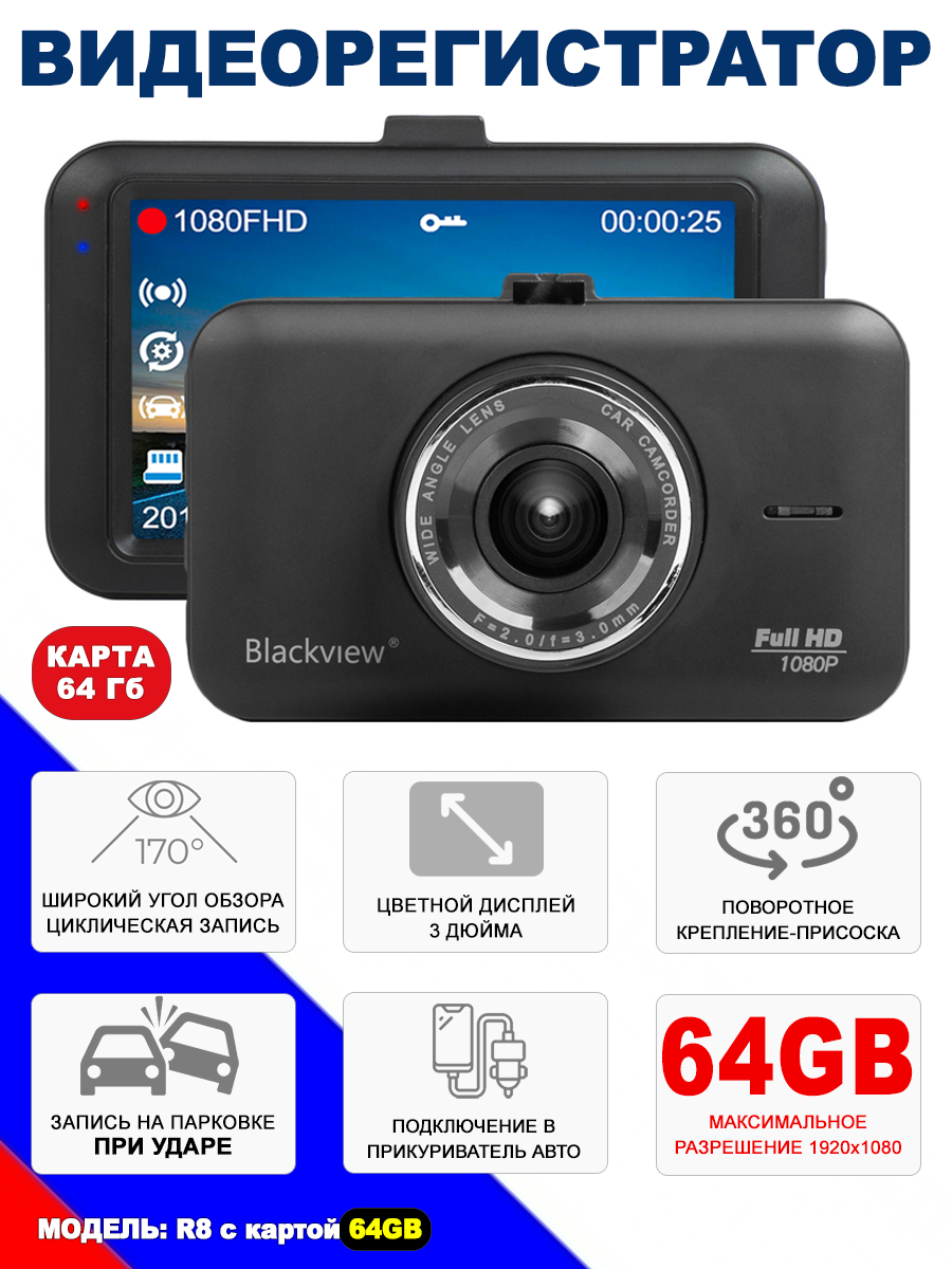 Купить Автомобильный видеорегистратор Blackview R8 SONY STARVIS с картой памяти 64GB, с функцией парковочный мониторинг. с доставкой по всей России.