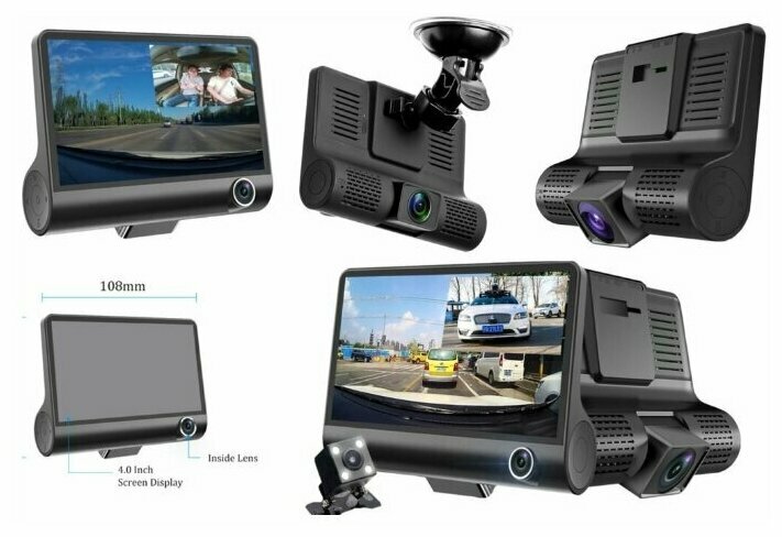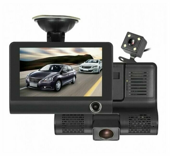 Автомобильный видеорегистратор Full HD 1080P с камерой заднего вида для парковки / Датчик удара G-сенсор / 4-дюймовый LCD дисплей / HDR / 3 камеры: сравнение цен, характеристики, фото, актуальное наличие и цены.