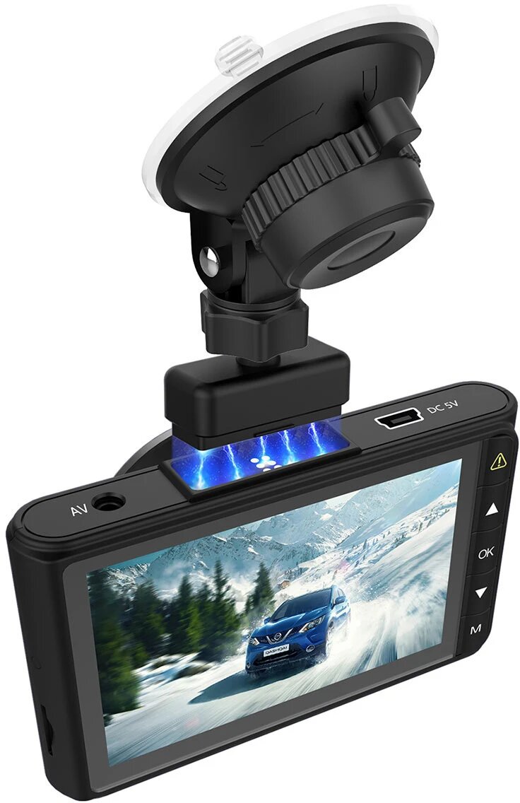с экраном, две камеры, запись: 1920x1080 30 к/с, угол обзора: 140°, экран: 3", датчик движения, датчик удара, режим парковки, ночной режим