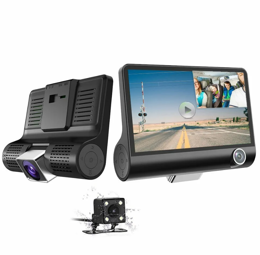 Купить Автомобильный видеорегистратор с Full HD разрешением с 3-мя камерами / Фронтальная + камера в салон + камера заднего вида для парковки / IPS дисплей с доставкой по всей России.
