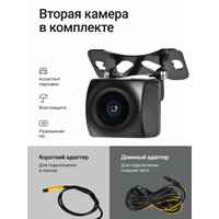 - Камера заднего вида имеет влагозащиту и подходит для установки как в салоне, так и снаружи авто. Есть помощник парковки – после включения задней передачи на экране появится разметка для комфортного и безопасного движения задним ходом.