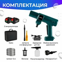 Беспроводная мойка аккумуляторная – это удобное и эффективное устройство для мойки автомобилей, которое работает за счет подачи воды под высоким давлением. Автомойка оснащена бесщеточным электрическим двигателем и аккумулятором, что позволяет использовать ее в любом месте без необходимости подключения к сети. Портативная аккумуляторная мойка бренда Yofidra оснащена пистолетом, шлангом для забора воды из любого источника, баком для моющего средства, фильтром. Также комплект в себя включает насадку с 6 режимами, пеногенератор, 2 аккумулятора, зарядное устройство и кейс для хранения и транспортировки мойки. Преимущества использования автомойки высокого давления включают в себя:1. Быструю и эффективную мойку автомобиля. Высокое давление воды позволяет быстро и качественно удалять грязь, пыль, налет и другие загрязнения с кузова, стекол и колес.2. Экономию времени и усилий. С помощью мойки высокого давления можно быстро и легко очистить автомобиль от грязи, не тратя на это много времени и физических усилий.3. Экономию воды. Использование высокого давления позволяет снизить расход воды при мойке автомобиля, что делает этот процесс более экологически чистым.4. Универсальность применения. Портативную автомойку можно использоваться не только для мойки автомобилей, но и для очистки террас, дорожек, плитки, лестниц, фасадов зданий и других поверхностей, а также опрыскивания деревьев и кустарников и мойки теплицы. Использование автомойки высокого давления делает процесс мойки автомобиля быстрым, удобным и эффективным, что делает ее отличным выбором для автовладельцев, желающих поддерживать свое транспортное средство в чистоте и порядке. Аккумуляторная мойка это отличный подарок для мужчины, автолюбителя, дачника и владельца загородного дома.