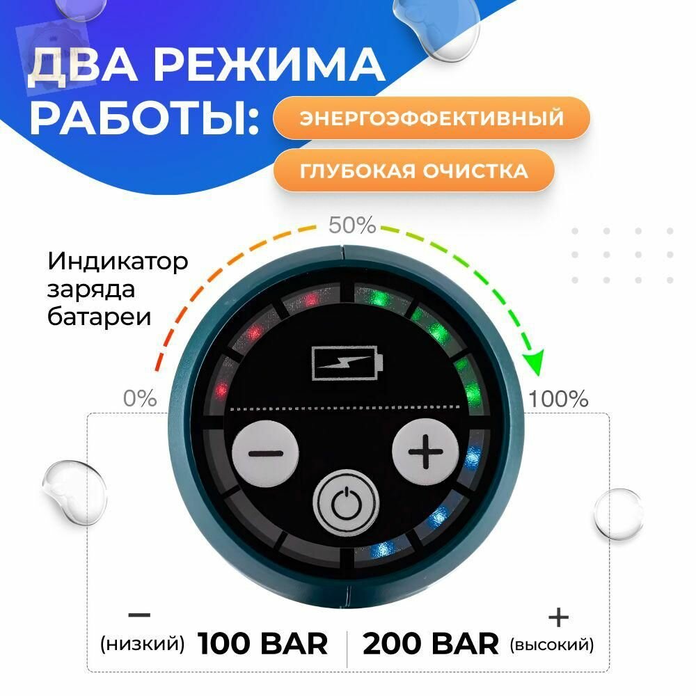 Беспроводная мойка аккумуляторная – это удобное и эффективное устройство для мойки автомобилей, которое работает за счет подачи воды под высоким давлением. Автомойка оснащена бесщеточным электрическим двигателем и аккумулятором, что позволяет использовать ее в любом месте без необходимости подключения к сети. Портативная аккумуляторная мойка бренда Yofidra оснащена пистолетом, шлангом для забора воды из любого источника, баком для моющего средства, фильтром. Также комплект в себя включает насадку с 6 режимами, пеногенератор, 2 аккумулятора, зарядное устройство и кейс для хранения и транспортировки мойки. Преимущества использования автомойки высокого давления включают в себя:1. Быструю и эффективную мойку автомобиля. Высокое давление воды позволяет быстро и качественно удалять грязь, пыль, налет и другие загрязнения с кузова, стекол и колес.2. Экономию времени и усилий. С помощью мойки высокого давления можно быстро и легко очистить автомобиль от грязи, не тратя на это много времени и физических усилий.3. Экономию воды. Использование высокого давления позволяет снизить расход воды при мойке автомобиля, что делает этот процесс более экологически чистым.4. Универсальность применения. Портативную автомойку можно использоваться не только для мойки автомобилей, но и для очистки террас, дорожек, плитки, лестниц, фасадов зданий и других поверхностей, а также опрыскивания деревьев и кустарников и мойки теплицы. Использование автомойки высокого давления делает процесс мойки автомобиля быстрым, удобным и эффективным, что делает ее отличным выбором для автовладельцев, желающих поддерживать свое транспортное средство в чистоте и порядке. Аккумуляторная мойка это отличный подарок для мужчины, автолюбителя, дачника и владельца загородного дома.