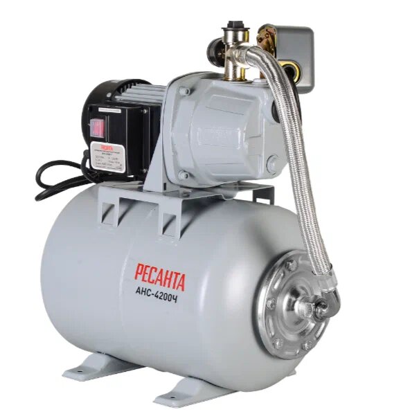 Реле с защитой от сухого хода Гибкая подводка большого диаметра Ресанта АНС-4200Ч 77/1/6 обеспечивает бесперебойное водоснабжение дома в автоматическом режиме Высокий напор и функция самовсасывания воды с глубины до 9 метров Класс защиты IP44 позволяет использовать насос во влажных помещениях: подвалах, хозяйственных блоках На корпусе расположен манометр для контроля уровня давления в системе