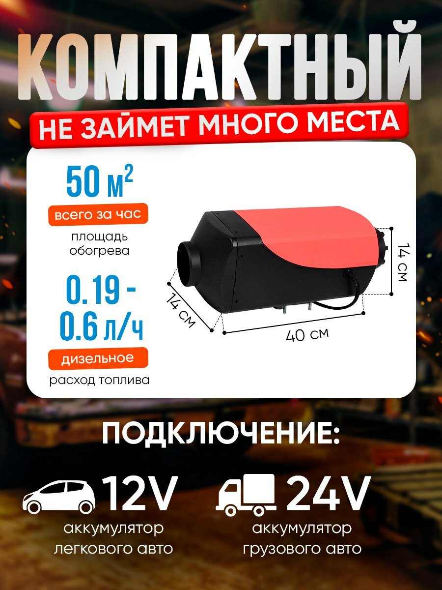 | Подробная комплектация | отопитель, пульт ДУ и ЖК дисплей, коммплект проводов с фишками, трубки вдува и вывода воздуха, воздушный фильтр, комплект ножек, комплект креплений. |