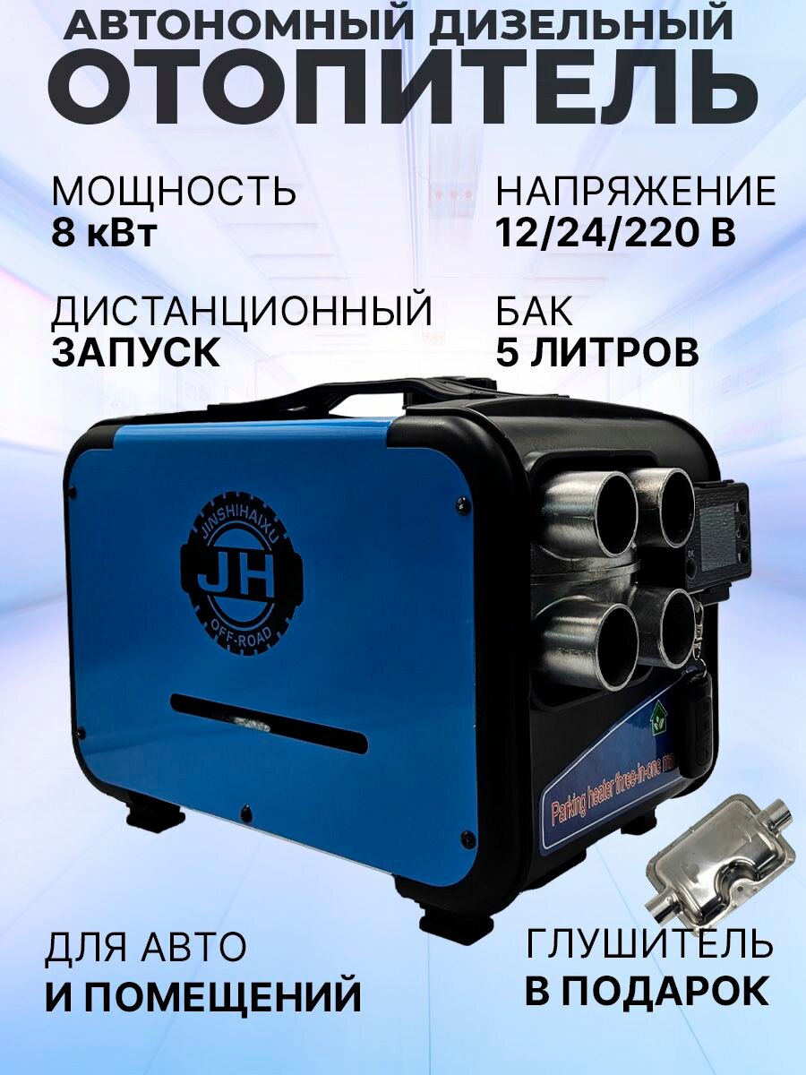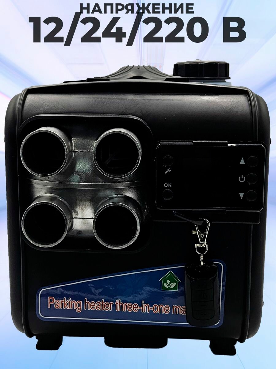 • Отопитель • Топливный бак 5л • Кабель с предохранителем • Пульт дистанционного управления • Труба воздухозаборника гофрированная • Труба выхлопная из нержавеющей стали • Труба гофрированная для подачи нагретого воздуха • Пластина для установки • Воздушный фильтр • Топливный фильтр • Комплект для установки
