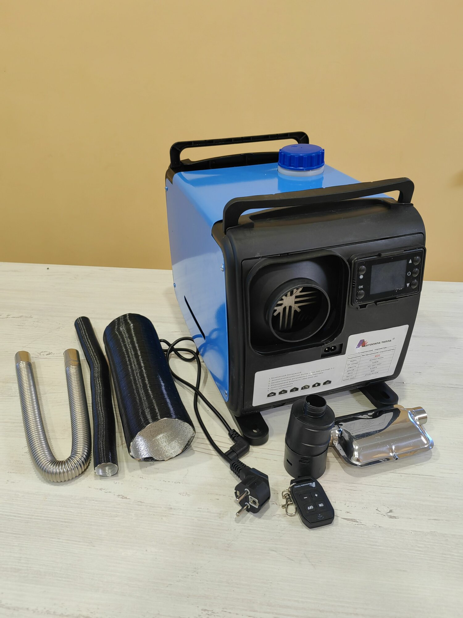 - Автономный отопитель - Пульт дистанционного управления с батарейкой - Воздушный фильтр - Воздуховод – Впускная труба – Выхлопная труба - Глушитель – Набор аксессуаров для монтажа - Инструкция на русском языке