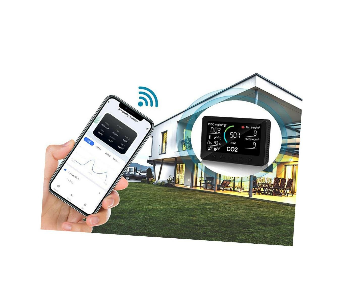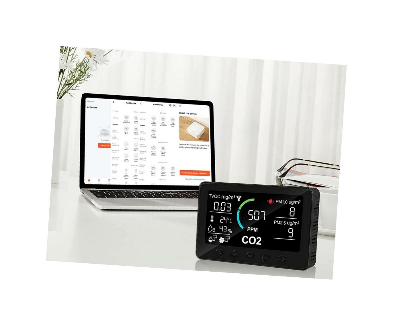 Автономный многофункциональный детектор Tuya Wi-Fi умный датчик 6 в 1 — Модель: HT-02/61 BT (F1758EU) CO2, влажность, температура, PM2.5, PM1.0, TVOC: сравнение цен, характеристики, фото, актуальное наличие и цены.