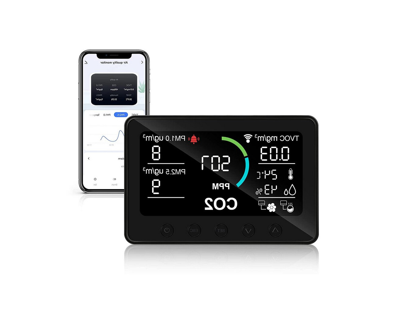 Купить Автономный многофункциональный детектор Tuya Wi-Fi умный датчик 6 в 1 — Модель: HT-02/61 BT (F1758EU) CO2, влажность, температура, PM2.5, PM1.0, TVOC с доставкой по всей России.